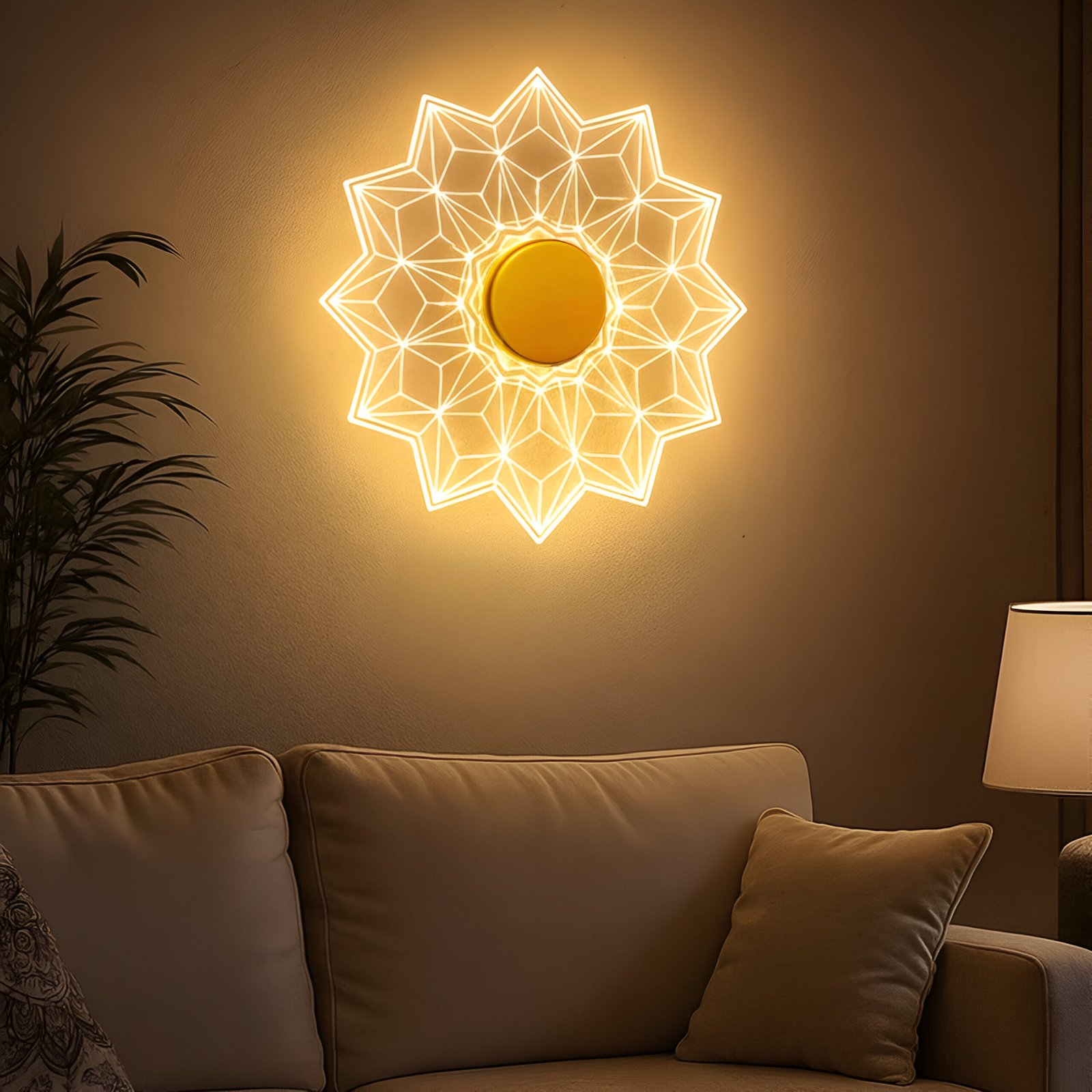 Lamp master Luxury Sunburst Wall Light – White & Gold Metal Finish